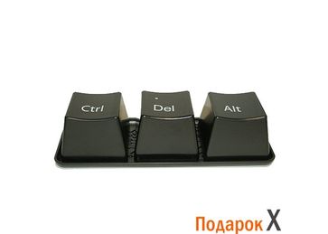 и три чашки с надписями CTRL ALT DEL соответственно. Данное сочетание клавиш применяется для перезагрузки компьютера, а основная мыслю этого подарка - перезагрузись, сделай паузу в работе.