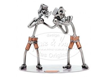 БОКСЕРЫСувенирная продукция немецкой фирмы HINZ&KUNST в стиле Hi-Tech, сделана с помощью лазера из металла, который не подвергается коррозии и не темнеет. Дизайнер коллекции - Гюнтер Шольц. Уникальность этой продукции заключается в том, что дизайнеру удалось с юмором воплотить в металле сцены из жизни. None