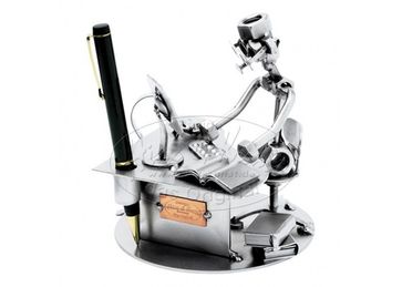 БУХГАЛТЕРСувенирная продукция немецкой фирмы HINZ&KUNST в стиле Hi-Tech, сделана с помощью лазера из металла, который не подвергается коррозии и не темнеет. Дизайнер коллекции - Гюнтер Шольц. Уникальность этой продукции заключается в том, что дизайнеру удалось с юмором воплотить в металле сцены из жизни. None