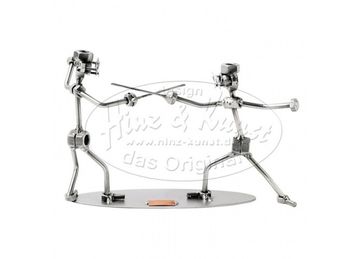 ФЕХТОВАНИЕСувенирная продукция немецкой фирмы HINZ&KUNST в стиле Hi-Tech, сделана с помощью лазера из металла, который не подвергается коррозии и не темнеет. Дизайнер коллекции - Гюнтер Шольц. Уникальность этой продукции заключается в том, что дизайнеру удалось с юмором воплотить в металле сцены из жизни. None