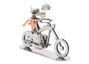 ЛОСЬ НА БАЙКЕСувенирная продукция немецкой фирмы HINZ&KUNST в стиле Hi-Tech, сделана с помощью лазера из металла, который не подвергается коррозии и не темнеет. Дизайнер коллекции - Гюнтер Шольц. Уникальность этой продукции заключается в том, что дизайнеру удалось с юмором воплотить в металле сцены из жизни. None
