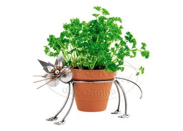 Подставка для цветочного горшка "Кот"Сувенирная продукция немецкой фирмы HINZ&KUNST в стиле Hi-Tech, сделана с помощью лазера из металла, который не подвергается коррозии и не темнеет. Дизайнер коллекции - Гюнтер Шольц. Уникальность этой продукции заключается в том, что дизайнеру удалось с юмором воплотить в металле сцены из жизн None
