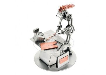 ПРОДАВЩИЦАСувенирная продукция немецкой фирмы HINZ&KUNST в стиле Hi-Tech, сделана с помощью лазера из металла, который не подвергается коррозии и не темнеет. Дизайнер коллекции - Гюнтер Шольц. Уникальность этой продукции заключается в том, что дизайнеру удалось с юмором воплотить в металле сцены из жизни. None