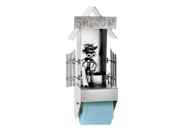 САЛУН подставка для туалетной бумагиСувенирная продукция немецкой фирмы HINZ&KUNST в стиле Hi-Tech, сделана с помощью лазера из металла, который не подвергается коррозии и не темнеет. Дизайнер коллекции - Гюнтер Шольц. Уникальность этой продукции заключается в том, что дизайнеру удалось с юмором воплотить в металле сцены из жизни. None