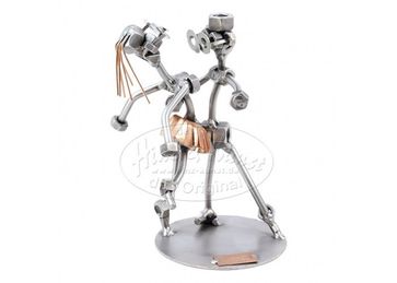 ТАНЦОРЫ РОК-Н-РОЛЛСувенирная продукция немецкой фирмы HINZ&KUNST в стиле Hi-Tech, сделана с помощью лазера из металла, который не подвергается коррозии и не темнеет. Дизайнер коллекции - Гюнтер Шольц. Уникальность этой продукции заключается в том, что дизайнеру удалось с юмором воплотить в металле сцены из жизни. None