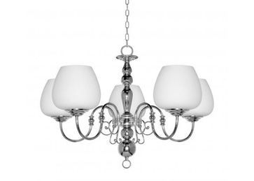 Мощность, Вт:40W, Тип цоколя:E14, Количество ламп, шт:5, Площадь освещения, м.кв.:10, Высота, см:48, Цвет арматуры:Хром, Цвет плафона:Белый, Ширина (Диаметр), см:71, Материал арматуры:Металл, Материал плафона:Стекло None