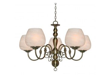 Материал арматуры:Металл, Материал плафона:Стекло, Цвет арматуры:Античная бронза, Цвет плафона:Белый, Ширина (Диаметр), см:71, Высота, см:48, Площадь освещения, м.кв.:10, Количество ламп, шт:5, Тип цоколя:E14, Мощность, Вт:40W None