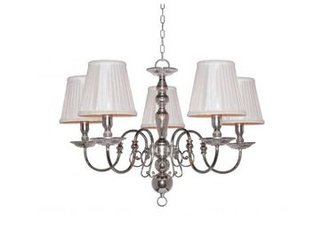 Материал арматуры:Металл, Материал плафона:Ткань, Цвет арматуры:Хром, Цвет плафона:Белый, Ширина (Диаметр), см:71, Высота, см:48, Площадь освещения, м.кв.:10, Количество ламп, шт:5, Тип цоколя:E14, Мощность, Вт:40W None