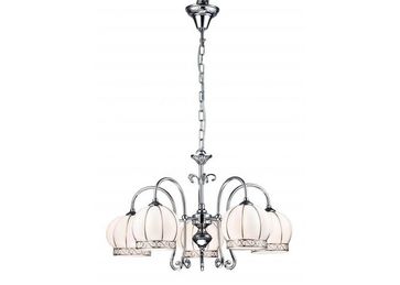 Материал арматуры:Металл, Материал плафона:Стекло, Цвет арматуры:Хром, Цвет плафона:Белый, Ширина (Диаметр), см:62, Высота, см:38, Площадь освещения, м.кв.:15, Количество ламп, шт:5, Тип цоколя:E14, Мощность, Вт:60W, Дополнительная информация:Высота указана без учета цепи None