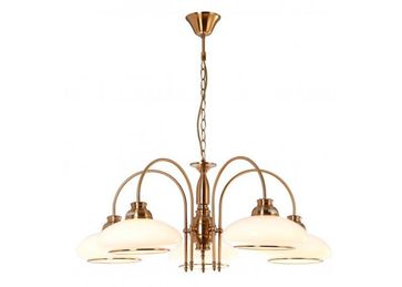 Материал арматуры:Металл, Материал плафона:Стекло, Цвет арматуры:Античная бронза, Цвет плафона:Белый, Ширина (Диаметр), см:88, Высота, см:70, Площадь освещения, м.кв.:10, Количество ламп, шт:5, Тип цоколя:E27, Мощность, Вт:40W, Дополнительная информация:Длина цепи: 60см None