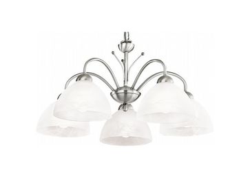 Максимальная площадь помещения : 22 м2Высота : 25 смМаксимальная высота люстры : 70 смМинимальная высота люстры : 50 смДлина/ширина конструкции : 55 смМатериал каркаса : МеталлЦвет каркаса : Матовое сереброМатериал плафона : СтеклоЦвет плафонов : АлебастрОбщая мощность : 300 ВтКоличество ламп : 5Мощность одной лампы : 60 ВтТип используемых ламп : Лампа накаливания, цоколь - 14ммКомплектация лампочками : Лампы в комплект не входят None