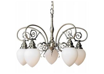 Максимальная площадь помещения : 21 м2Высота : 42 смМаксимальная высота люстры : 142 смМинимальная высота люстры : 70 смДлина/ширина конструкции : 58 смМатериал каркаса : МеталлЦвет каркаса : Бронза под старинуМатериал плафона : Стекло матовоеЦвет плафонов : Матовое белое стеклоОбщая мощность : 300 ВтКоличество ламп : 5Мощность одной лампы : 60 ВтТип используемых ламп : Лампа накаливания, цоколь - 14ммКомплектация лампочками : Лампы в комплект не входят None