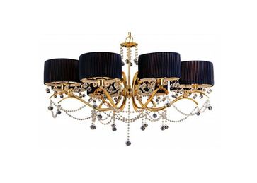 Высота 600 ммДиаметр 950 ммЦвет плафона черный, неокрашенныйМатериал плафонов текстиль, хрустальТип поверхности плафонов рельефный, прозрачныйЦвет арматуры золотойМатериал арматуры металлТип поверхности арматуры глянцевыйКоличество ламп 8 шт.Мощность лампы 60 WТип лампы накаливанияТип цоколя E27Напряжение 230 VНаличие лампочек в комплекте нетВозможность подключения диммера МожноСтепень пыле-влагозащиты IP20Цветовая температура 2400-2800 K None