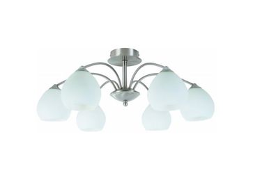 Высота 230 ммДиаметр 610 ммЦвет плафона белыйМатериал плафонов стеклоТип поверхности плафонов матовыйЦвет арматуры серебряныйМатериал арматуры металлТип поверхности арматуры СатинКоличество ламп 6 шт.Мощность лампы 40 WТип лампы галогеноваяТип цоколя G9Напряжение 230 VНаличие лампочек в комплекте даВозможность подключения диммера МожноСтепень пыле-влагозащиты IP20Цветовая температура 2800-3200 K None
