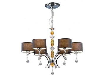 Мощность, Вт:40W, Тип цоколя:E27, Количество ламп, шт:6, Площадь освещения, м.кв.:14, Высота, см:97, Ширина (Диаметр), см:84, Цвет плафона:Коричневый, Цвет арматуры:Хром, Материал арматуры:Металл/Стекло, Материал плафона:Ткань None
