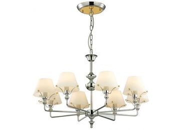 Материал арматуры:Металл, Материал плафона:Стекло, Цвет арматуры:Хром/Золото, Цвет плафона:Белый матовый, Ширина (Диаметр), см:82, Высота, см:85, Площадь освещения, м.кв.:18, Количество ламп, шт:8, Тип цоколя:E14, Мощность, Вт:40W None
