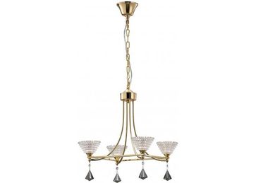 Материал арматуры:Металл, Материал плафона:Стекло, Цвет арматуры:Золото, Ширина (Диаметр), см:53, Высота, см:83.5, Площадь освещения, м.кв.:15, Количество ламп, шт:6, Тип цоколя:G9, Мощность, Вт:40W, Дополнительная информация:Лампочки в комплекте. Подвески из хрусталя None