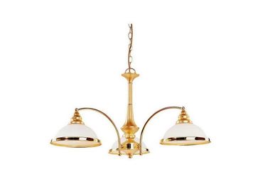 Материал арматуры:Металл, Материал плафона:Стекло, Цвет арматуры:Золото, Цвет плафона:Белый, Ширина (Диаметр), см:65, Высота, см:41, Площадь освещения, м.кв.:11, Количество ламп, шт:3, Тип цоколя:E27, Мощность, Вт:60W None