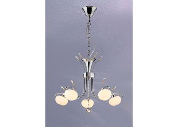 Мощность, Вт:40W, Тип цоколя:G9, Количество ламп, шт:5, Дополнительная информация:Декоративные подвесы из стекла, Материал арматуры:Металл, Цвет арматуры:Хром, Ширина (Диаметр), см:52,5, Высота, см:94,5, Площадь освещения, м.кв.:12, Материал плафона:Стекло, Цвет плафона:Белый матовый None