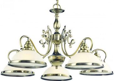 Мощность, Вт:60W, Тип цоколя:E27, Количество ламп, шт:5, Материал арматуры:Металл, Цвет арматуры:Бронза, Ширина (Диаметр), см:68, Высота, см:43, Площадь освещения, м.кв.:20, Материал плафона:Стекло, Цвет плафона:Белый матовый None