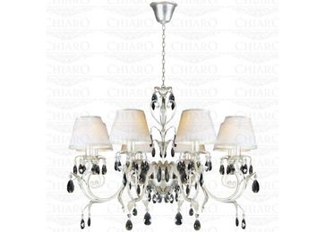 Материал арматуры:Металл, Материал плафона:Текстиль, Цвет арматуры:Хром, Цвет плафона:Белый, Ширина (Диаметр), см:80, Высота, см:97, Площадь освещения, м.кв.:24, Количество ламп, шт:8, Тип цоколя:E14, Мощность, Вт:60W, Дополнительная информация:Мнталлическое основание покрыто сусальным серебром. Хрустальные декоративные подвески None