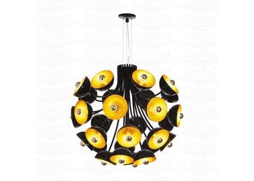 Материал арматуры:Металл, Материал плафона:Металл, Цвет арматуры:Черный, Цвет плафона:Черный, Ширина (Диаметр), см:80, Высота, см:142, Площадь освещения, м.кв.:35, Количество ламп, шт:28, Тип цоколя:E14, Мощность, Вт:25W, Дополнительная информация:Плафоны декорированы сусальным золотом None