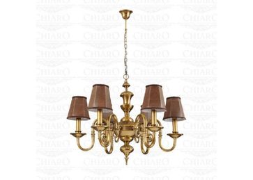 Материал арматуры:Металл, Материал плафона:Искуственная кожа, Цвет арматуры:Латунь, Цвет плафона:Коричневый, Ширина (Диаметр), см:68, Высота, см:155, Площадь освещения, м.кв.:12, Количество ламп, шт:6, Тип цоколя:E14, Мощность, Вт:40W None