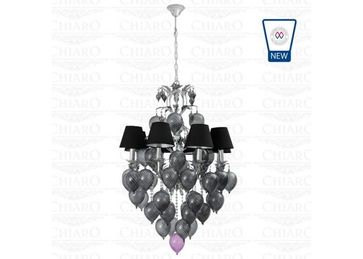 Материал арматуры:Металл, Материал плафона:Текстиль, Цвет арматуры:Хром, Цвет плафона:Черный, Ширина (Диаметр), см:75, Высота, см:160, Площадь освещения, м.кв.:24, Количество ламп, шт:8, Тип цоколя:E14, Мощность, Вт:60W, Дополнительная информация:Объемные декоративные элементы из дутого стекла дымчатого оттенка None