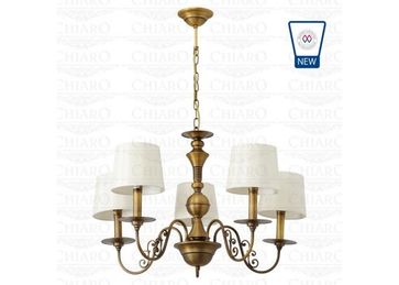 Материал арматуры:Металл, Материал плафона:Текстиль, Цвет арматуры:Бронза, Цвет плафона:Белый, Ширина (Диаметр), см:70, Высота, см:90, Площадь освещения, м.кв.:10, Количество ламп, шт:5, Тип цоколя:E14, Мощность, Вт:40W None