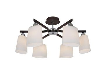 Материал арматуры:Металл, Материал плафона:Стекло, Цвет арматуры:Хром/Венге, Цвет плафона:Белый, Ширина (Диаметр), см:58, Высота, см:28, Количество ламп, шт:6, Тип цоколя:E14, Мощность, Вт:60W, Коллекция:Астра None
