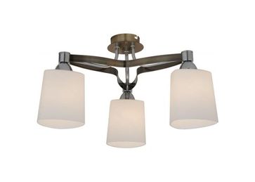 Материал арматуры:Металл, Материал плафона:Стекло, Цвет арматуры:Хром/Старая Бронза, Цвет плафона:Белый, Ширина (Диаметр), см:48, Высота, см:30, Количество ламп, шт:3, Тип цоколя:E27, Мощность, Вт:75W, Коллекция:Глория None