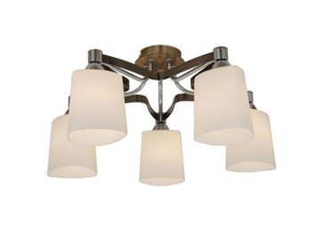 Материал арматуры:Металл, Материал плафона:Стекло, Цвет арматуры:Хром/Старая Бронза, Цвет плафона:Белый, Ширина (Диаметр), см:58, Высота, см:30, Количество ламп, шт:5, Тип цоколя:E27, Мощность, Вт:75W, Коллекция:Глория None
