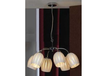 Площадь освещения, м.кв.:17, Высота, см:150, Ширина (Диаметр), см:60, Цвет арматуры:Хром, Материал арматуры:Металл, Количество ламп, шт:6, Тип цоколя:E14, Мощность, Вт:40W, Цвет плафона:Белый матовый в полоску, Материал плафона:Стекло None