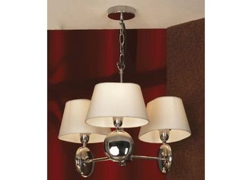 Мощность, Вт:40W, Тип цоколя:E14, Количество ламп, шт:3, Материал арматуры:Металл, Цвет арматуры:Хром, Ширина (Диаметр), см:42, Высота, см:85, Материал плафона:Термоткань, Цвет плафона:Кремовый None