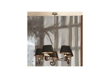 Мощность, Вт:40W, Тип цоколя:E14, Количество ламп, шт:5, Материал арматуры:Металл, Цвет арматуры:Хром, Ширина (Диаметр), см:63, Высота, см:85, Площадь освещения, м.кв.:14, Материал плафона:Термоткань, Цвет плафона:Черный None