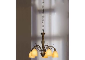 Мощность, Вт:40W, Тип цоколя:E14, Количество ламп, шт:5, Материал арматуры:Металл, Цвет арматуры:Темная бронза, Ширина (Диаметр), см:48, Высота, см:110, Площадь освещения, м.кв.:16, Материал плафона:Стекло, Цвет плафона:Желтый матовый None