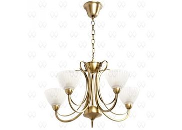 Материал арматуры:Металл, Материал плафона:Стекло, Цвет арматуры:Старинная бронза, Цвет плафона:Белый, Ширина (Диаметр), см:60, Высота, см:80, Площадь освещения, м.кв.:15, Количество ламп, шт:5, Тип цоколя:E14, Мощность, Вт:60W, Дополнительная информация:Плафоны ребристой формы None
