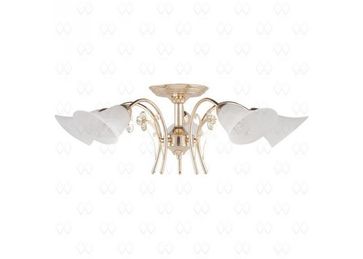 Материал арматуры:Металл, Материал плафона:Стекло, Цвет арматуры:Золото, Цвет плафона:Белый, Ширина (Диаметр), см:75, Высота, см:23, Длина, см:75, Площадь освещения, м.кв.:15, Количество ламп, шт:5, Тип цоколя:E14, Мощность, Вт:60W, Дополнительная информация:Плафоны с добавлением алебастра None