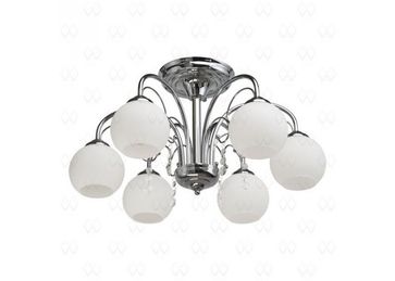 Материал арматуры:Металл, Материал плафона:Стекло, Цвет арматуры:Хром, Цвет плафона:Белый, Ширина (Диаметр), см:55, Высота, см:30, Площадь освещения, м.кв.:18, Количество ламп, шт:6, Тип цоколя:E27, Мощность, Вт:60W, Дополнительная информация:Декоративные элементы из хрусталя None