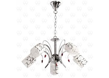 Материал арматуры:Металл, Материал плафона:Стекло, Цвет арматуры:Хром, Цвет плафона:Белый, Ширина (Диаметр), см:55, Высота, см:70, Площадь освещения, м.кв.:15, Количество ламп, шт:5, Тип цоколя:E27, Мощность, Вт:60W, Дополнительная информация:Авангардный черный рисунок None