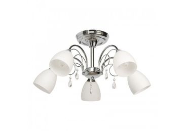 Материал арматуры:Металл, Материал плафона:Стекло, Цвет арматуры:Хром, Цвет плафона:Белый, Ширина (Диаметр), см:62, Высота, см:31, Длина, см:62, Площадь освещения, м.кв.:15, Количество ламп, шт:5, Тип цоколя:E14, Мощность, Вт:60W, Дополнительная информация:Декоративные подвески из хрусталя, Коллекция:Нежность None