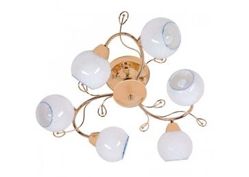 Материал арматуры:Металл, Материал плафона:Стекло, Цвет арматуры:Золото, Цвет плафона:Белый, Ширина (Диаметр), см:56, Высота, см:26, Длина, см:56, Площадь освещения, м.кв.:12, Количество ламп, шт:6, Тип цоколя:E14, Мощность, Вт:40W, Коллекция:Грация None