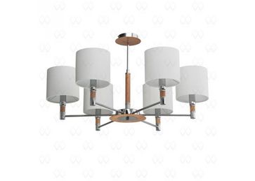 Материал арматуры:Металл, Материал плафона:Текстиль, Цвет арматуры:Хром, Цвет плафона:Белый, Ширина (Диаметр), см:75, Высота, см:45, Площадь освещения, м.кв.:12, Количество ламп, шт:6, Тип цоколя:E14, Мощность, Вт:40W, Дополнительная информация:Декоративные элементы из МДф, текстильные плафоны None