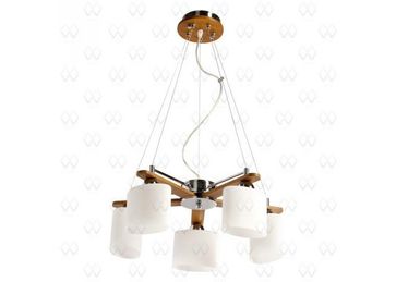 Материал арматуры:Металл, Материал плафона:Стекло, Цвет арматуры:Хром/Ольха, Цвет плафона:Белый, Ширина (Диаметр), см:55, Высота, см:76, Площадь освещения, м.кв.:15, Количество ламп, шт:5, Тип цоколя:E14, Мощность, Вт:60W, Дополнительная информация:Регулируемая высота. Декоративные элементы под дерево None