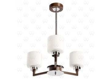 Материал арматуры:Металл, Материал плафона:Стекло, Цвет арматуры:Хром/Коричневый, Цвет плафона:Белый, Ширина (Диаметр), см:40, Высота, см:52, Площадь освещения, м.кв.:9, Количество ламп, шт:3, Тип цоколя:E14, Мощность, Вт:60W, Дополнительная информация:Металлическое основание, декорированное под дерево None
