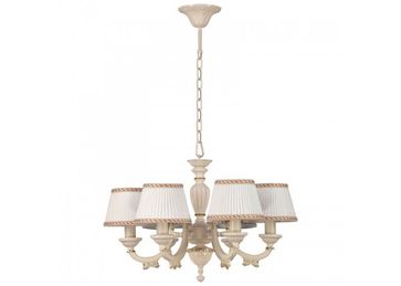 Материал арматуры:Металл, Материал плафона:Текстиль, Цвет арматуры:Белый/Золото, Цвет плафона:Белый, Ширина (Диаметр), см:52, Высота, см:80, Длина, см:52, Площадь освещения, м.кв.:18, Количество ламп, шт:6, Тип цоколя:E14, Мощность, Вт:60W, Коллекция:Ариадна None