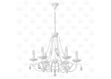 Материал арматуры:Металл, Цвет арматуры:Белый, Ширина (Диаметр), см:70, Высота, см:105, Площадь освещения, м.кв.:18, Количество ламп, шт:6, Тип цоколя:E14, Мощность, Вт:60W, Дополнительная информация:Крашенное метеллическое основание. Подвески из хрусталя None