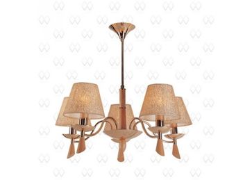 Материал арматуры:Металл, Материал плафона:Ткань, Цвет арматуры:Золото, Ширина (Диаметр), см:57, Высота, см:60, Площадь освещения, м.кв.:17, Количество ламп, шт:5, Тип цоколя:E14, Мощность, Вт:60W, Дополнительная информация:Декоративные элементы из натурального дерева None