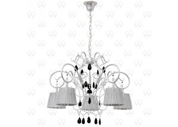 Материал арматуры:Металл, Материал плафона:Текстиль, Цвет арматуры:Серебряный, Ширина (Диаметр), см:65, Высота, см:57, Площадь освещения, м.кв.:10, Количество ламп, шт:5, Тип цоколя:E14, Мощность, Вт:40W, Дополнительная информация:Декоративные элементы из хрусталя None