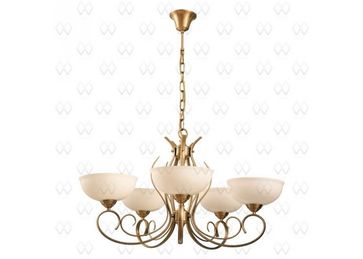 Материал арматуры:Металл, Материал плафона:Стекло, Цвет арматуры:Золото матовое, Цвет плафона:Белый, Ширина (Диаметр), см:73, Высота, см:70, Площадь освещения, м.кв.:15, Количество ламп, шт:5, Тип цоколя:E27, Мощность, Вт:60W None